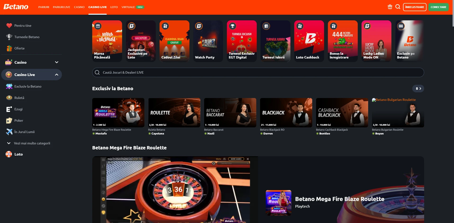Live casino la Betano
