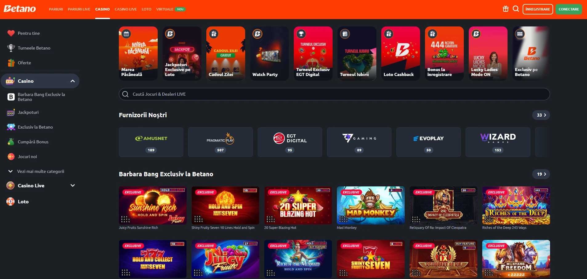 Betano Casino este un nume bine cunoscut în industria jocurilor de noroc online din România, oferind o gamă variată de opțiuni de pariere, inclusiv sloturi, live casino și pariuri sportive. Cu o platformă modernă și prietenoasă cu utilizatorul, Betano se remarcă printr-o experiență de joc captivantă și o varietate impresionantă de jocuri, de la sloturi și jocuri de masă, până la titluri cu dealer live.
