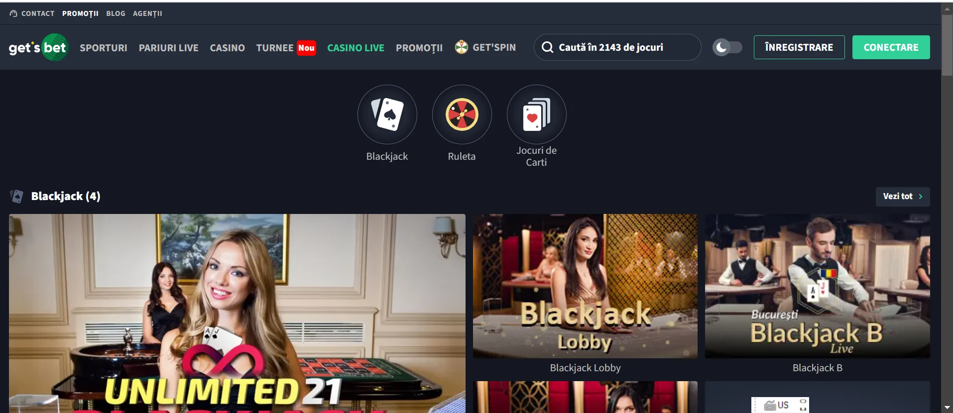 Cazinoul live al Get's Bet Casino include o varietate de jocuri populare, precum ruletă, blackjack, baccarat și poker, toate gestionate de dealeri profesioniști. Acest aspect adaugă un nivel suplimentar de interacțiune și realism, permițându-ți să comunici cu dealerii prin chat-ul live și să primești răspunsuri în timp real.