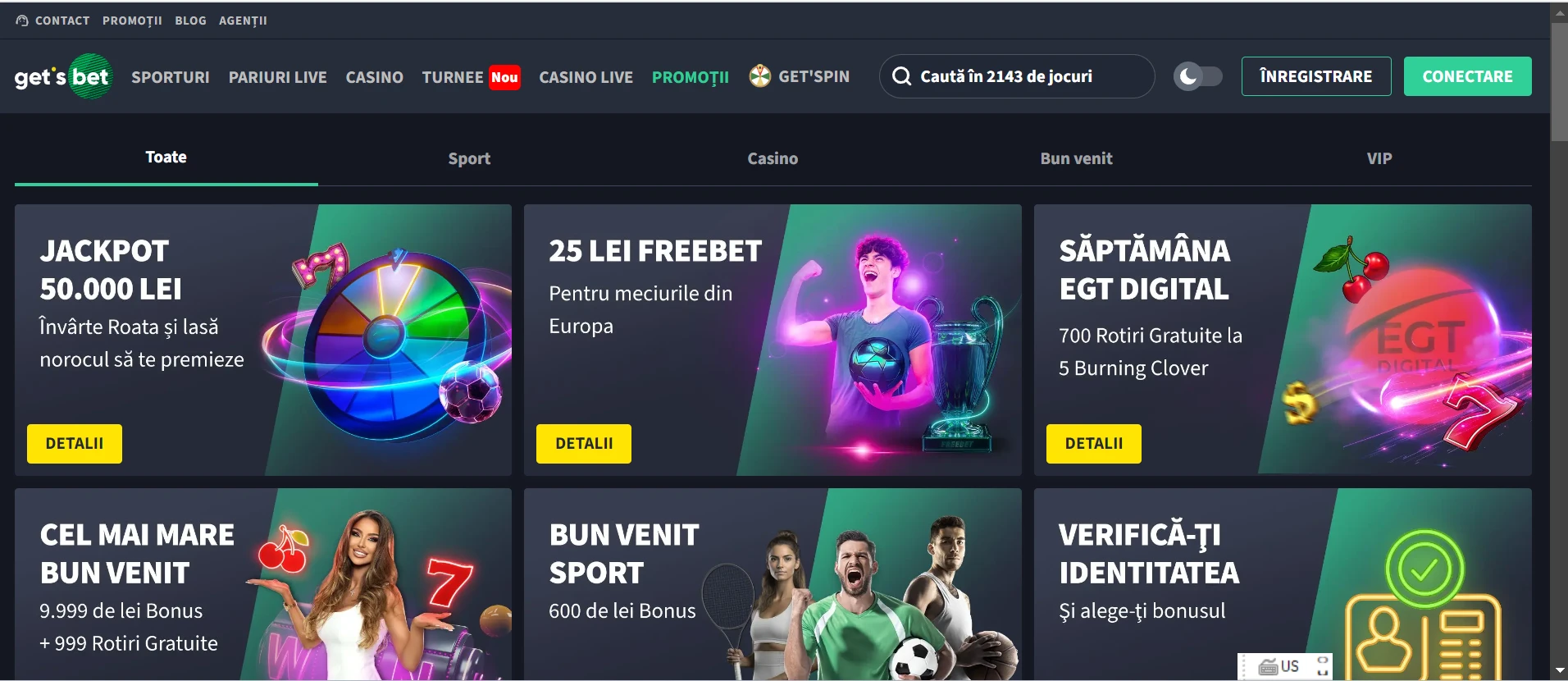 Unul dintre punctele forte ale Get's Bet Casino este oferta sa generoasă de bun venit, care poate ajunge până la 9.999 lei și 999 rotiri gratuite. Această ofertă atractivă este menită să ofere noi jucători un start excelent în explorarea numeroaselor oportunități de câștig disponibile pe platformă.