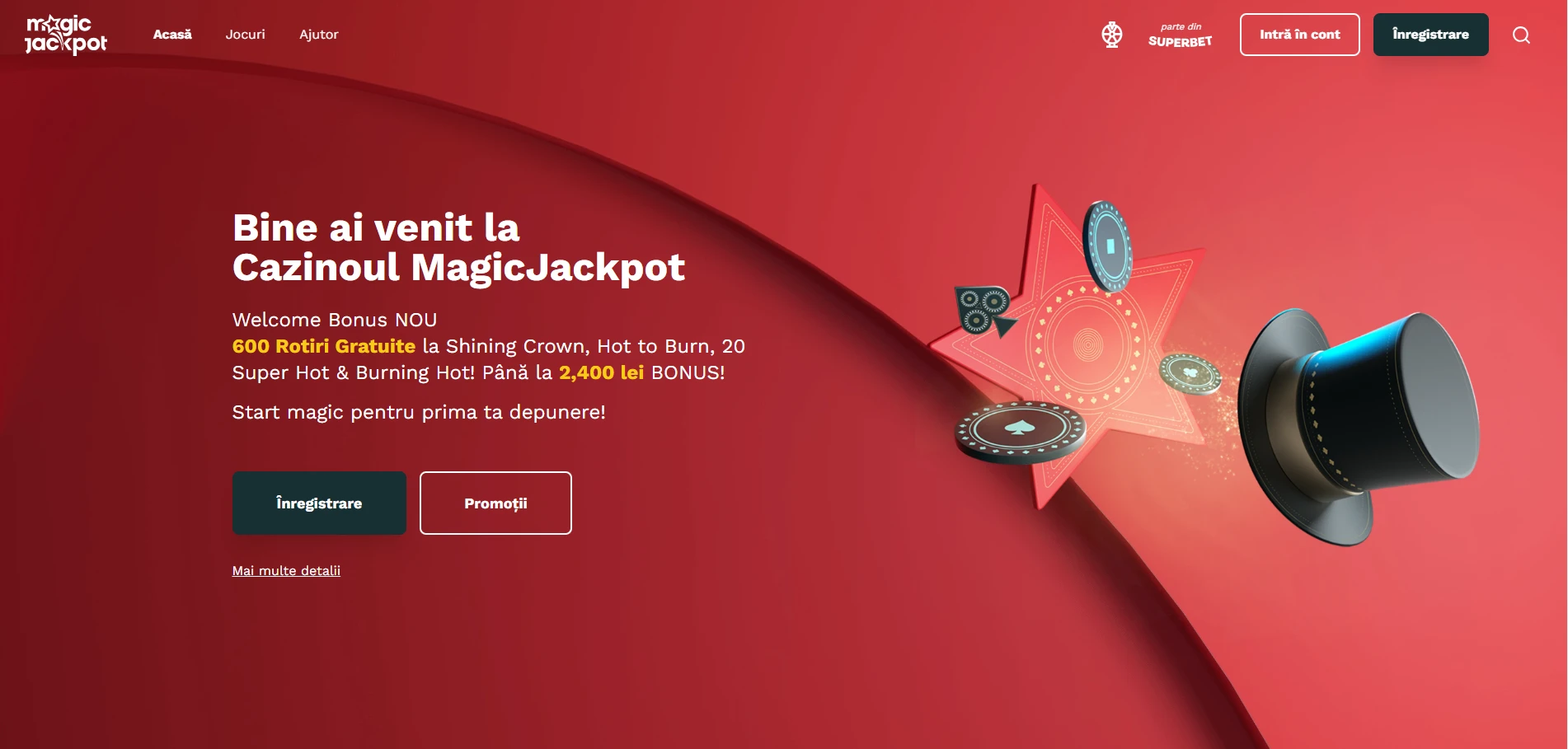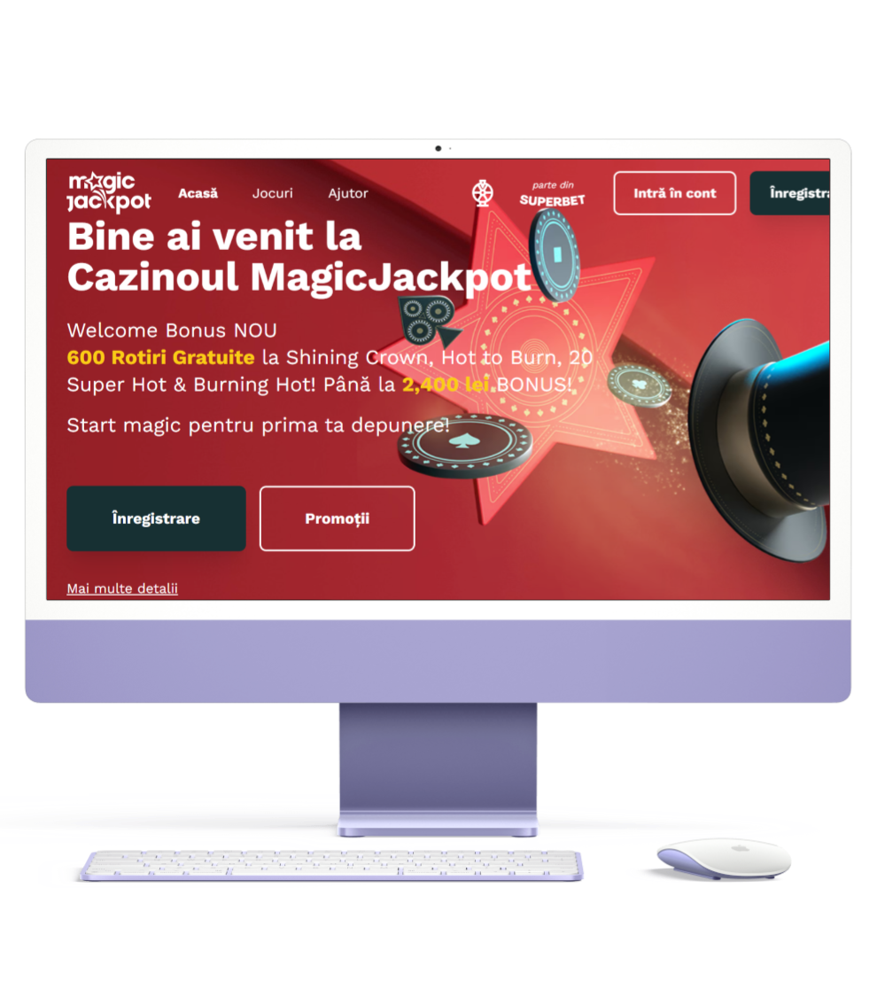Dacă ești în căutarea unui casino online care să îți ofere o experiență de joc unică și captivantă, Magic Jackpot Casino este locul potrivit. Acest cazino se remarcă printr-o ofertă generoasă de bonusuri și rotiri gratuite care îți oferă șansa de a începe jocul cu un avantaj considerabil. Cu un bonus de bun venit de până la 2400 lei și 600 de rotiri gratuite, Magic Jackpot îți pune la dispoziție toate instrumentele necesare pentru a explora o gamă variată de jocuri.
