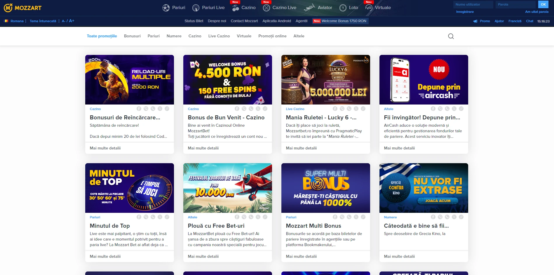 Pe lângă acestea, Mozzart Casino oferă periodic rotiri gratuite ca parte a programului de fidelitate sau în cadrul unor promoții speciale. De exemplu, poți beneficia de 150 de rotiri gratuite la jocul Mozzart Joker de la Endorphina, un slot popular, fără nicio condiție de rulaj. Aceste promoții suplimentare sunt ideale pentru a îți îmbunătăți experiența de joc și pentru a descoperi noi titluri pe platformă.