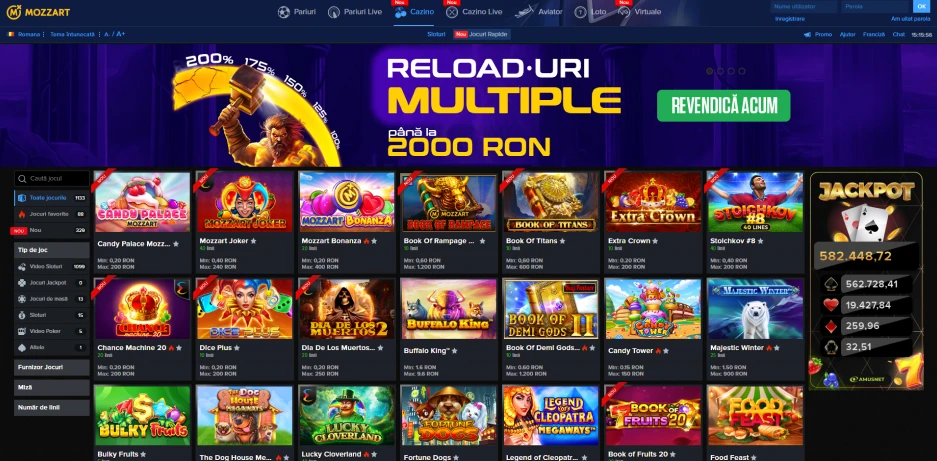 Mozzart Casino impresionează cu o colecție extinsă de sloturi, incluzând titluri de la cei mai renumiți furnizori precum Greentube, Endorphina, Playson și Pragmatic Play. Sloturile variază de la jocuri clasice cu fructe la sloturi video inovatoare cu teme epice și jackpoturi masive. Exemple populare includ Book of Dead, Sweet Bonanza, și Extra Crown. Fiecare slot oferă caracteristici speciale, cum ar fi rotiri gratuite, simboluri wild și jackpoturi progresive, asigurând o experiență captivantă și variată.