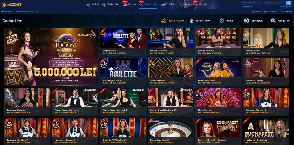 Mozzart Casino oferă o experiență captivantă de live casino, colaborând cu furnizori de renume precum Evolution Gaming, Pragmatic Play, și Playtech. Aceste parteneriate asigură o selecție variată de jocuri de masă cu dealer live, inclusiv Blackjack, Ruletă, și Baccarat.