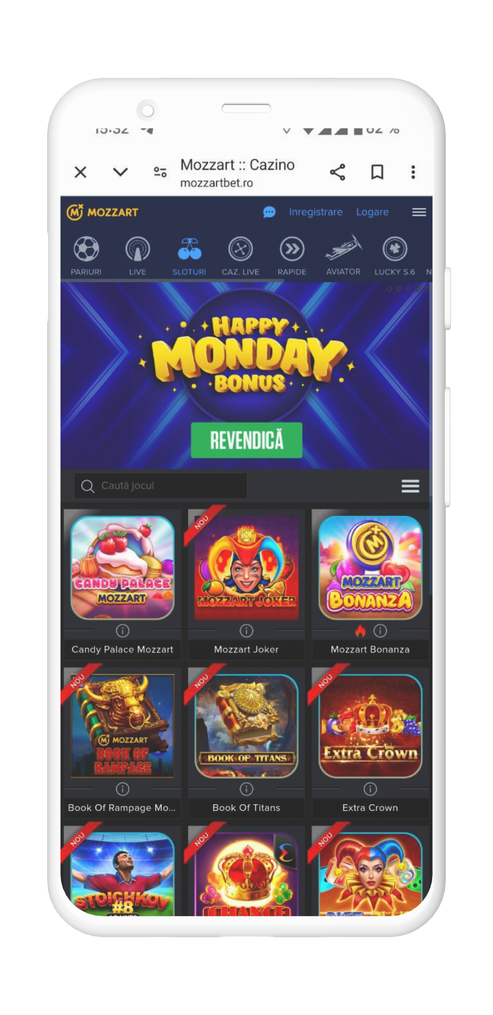 Aplicația oferă acces complet la toate funcționalitățile site-ului web, inclusiv sloturi, jocuri de masă și secțiunea de casino live. De asemenea, vei putea verifica soldul contului, efectua depuneri și retrageri, și accesa bonusuri și promoții exclusive pentru utilizatorii mobili. Interfața este intuitivă, optimizată pentru ecranele mai mici, și include opțiuni de navigare ușoară și suport pentru notificări push, astfel încât să nu pierzi niciodată vreo ofertă importantă sau actualizare.